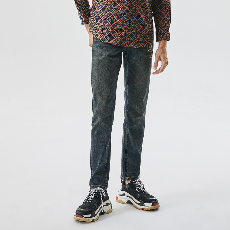 加绒可选休闲长裤 秋冬季 男 海澜之家三国演义直筒猫须黑牛仔裤 HLA