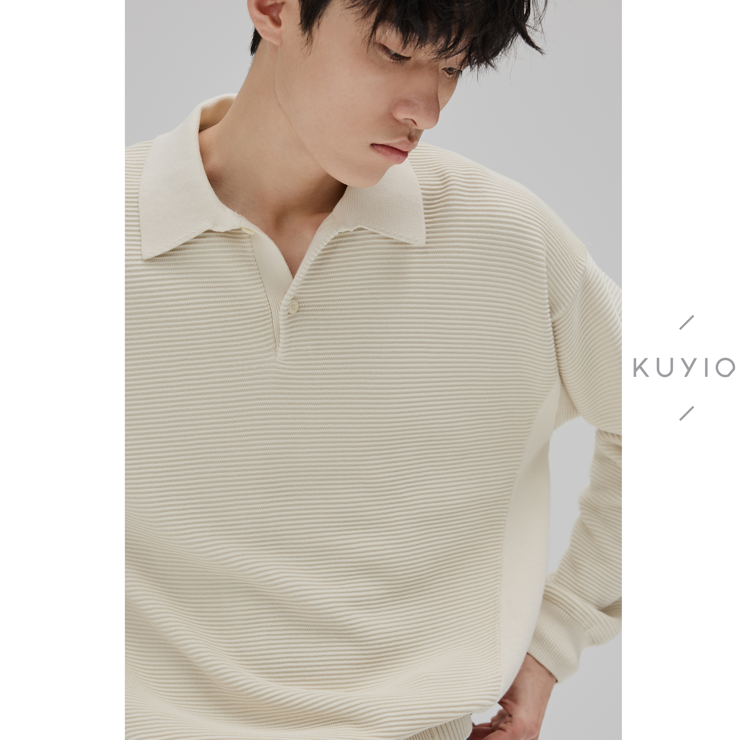 拉链宽松毛衣男中领针织衫 肌理波纹开衫 506165 新款 三福2025秋冬季