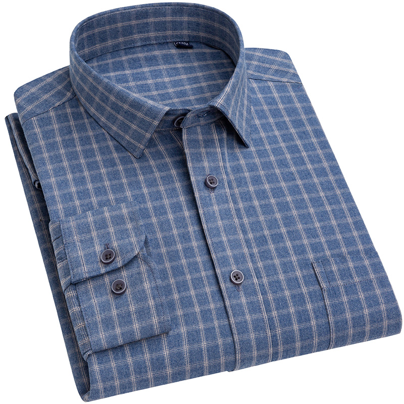 长袖 新款 衬衫 抗皱中年商务磨毛格子衬衣免烫宽松爸爸装 男士 春秋季