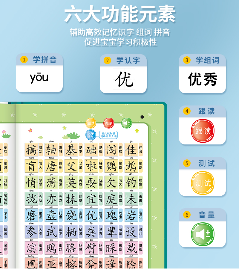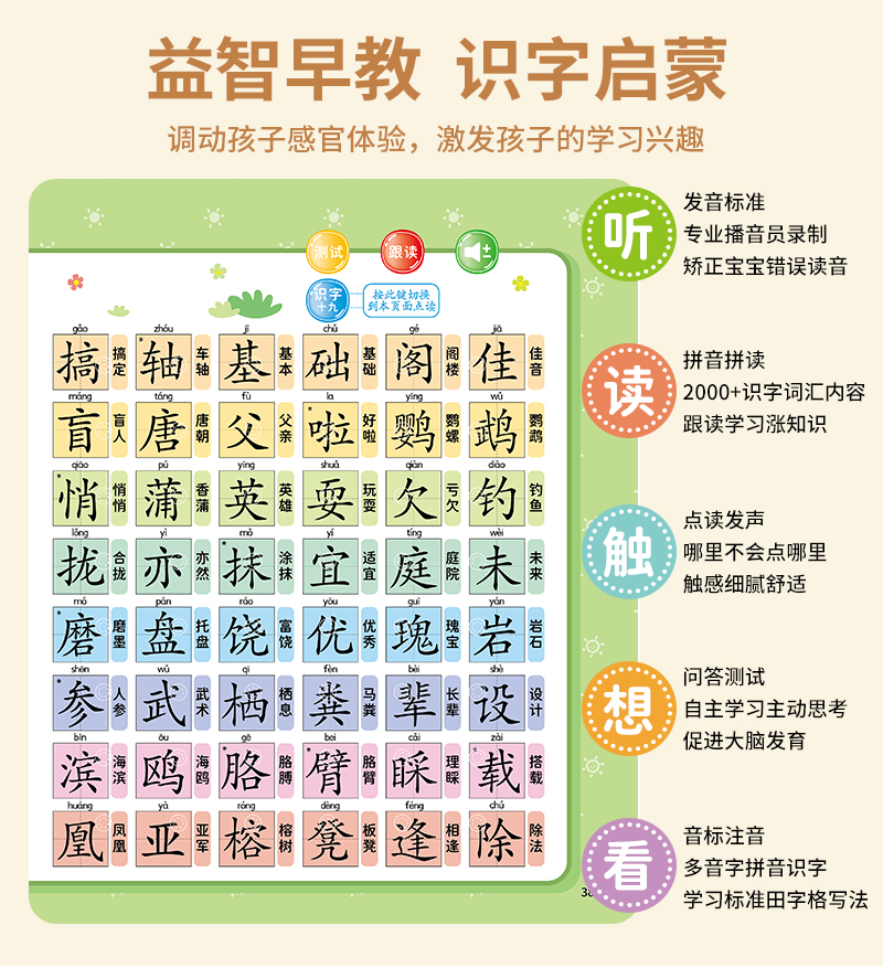 会说话 手指点读书识字大王2000字早教有声播放书籍幼小衔接宝宝点读发声书儿童认字学习神器幼儿园升小学生一年级 汉字家族2000