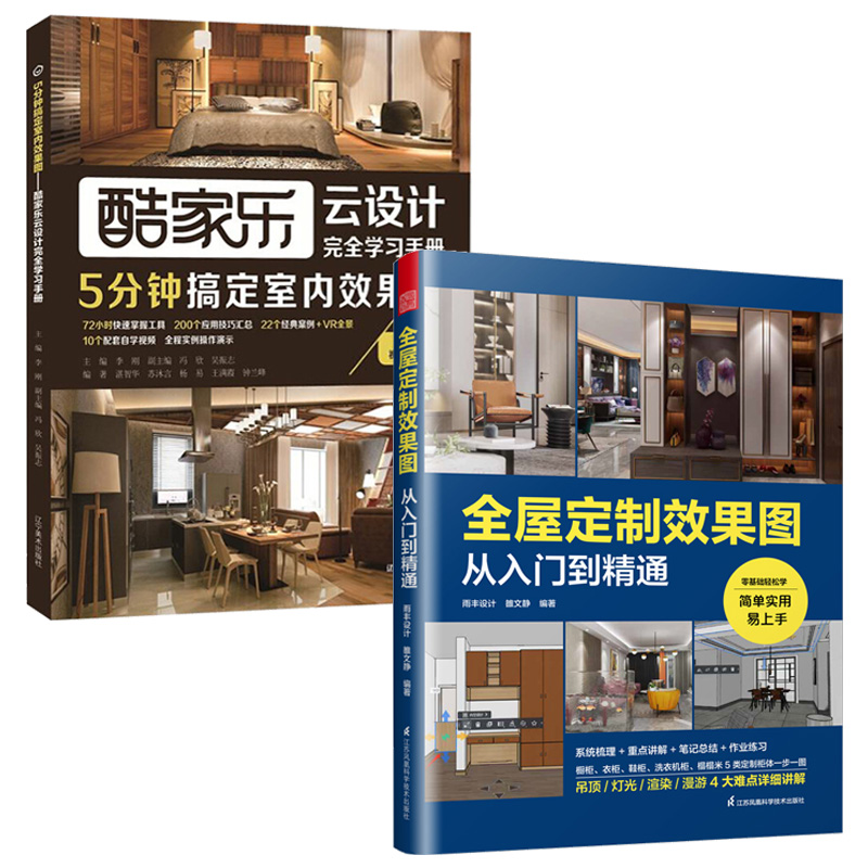 设计教材视频创意家居装 家装 修设计自学工具书籍 全屋定制效果图从入门到精通全2册 酷家乐云设计完全学习手册5分钟搞定室内效果图