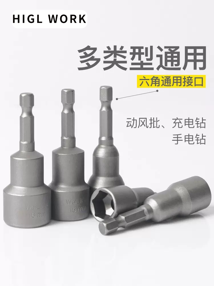内六角柄套筒风批头套筒头气动电动扳手电钻风炮螺丝刀S1