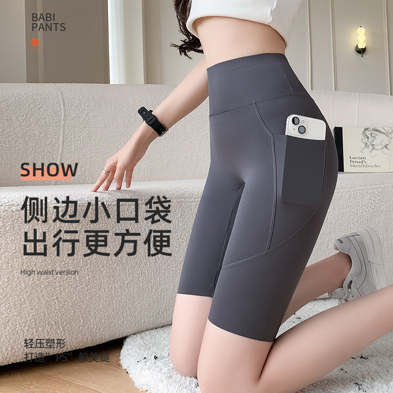骑行五分鲨鱼打底裤 口袋休闲裤 收腹提臀健身瑜伽裤 薄款 女外穿夏季