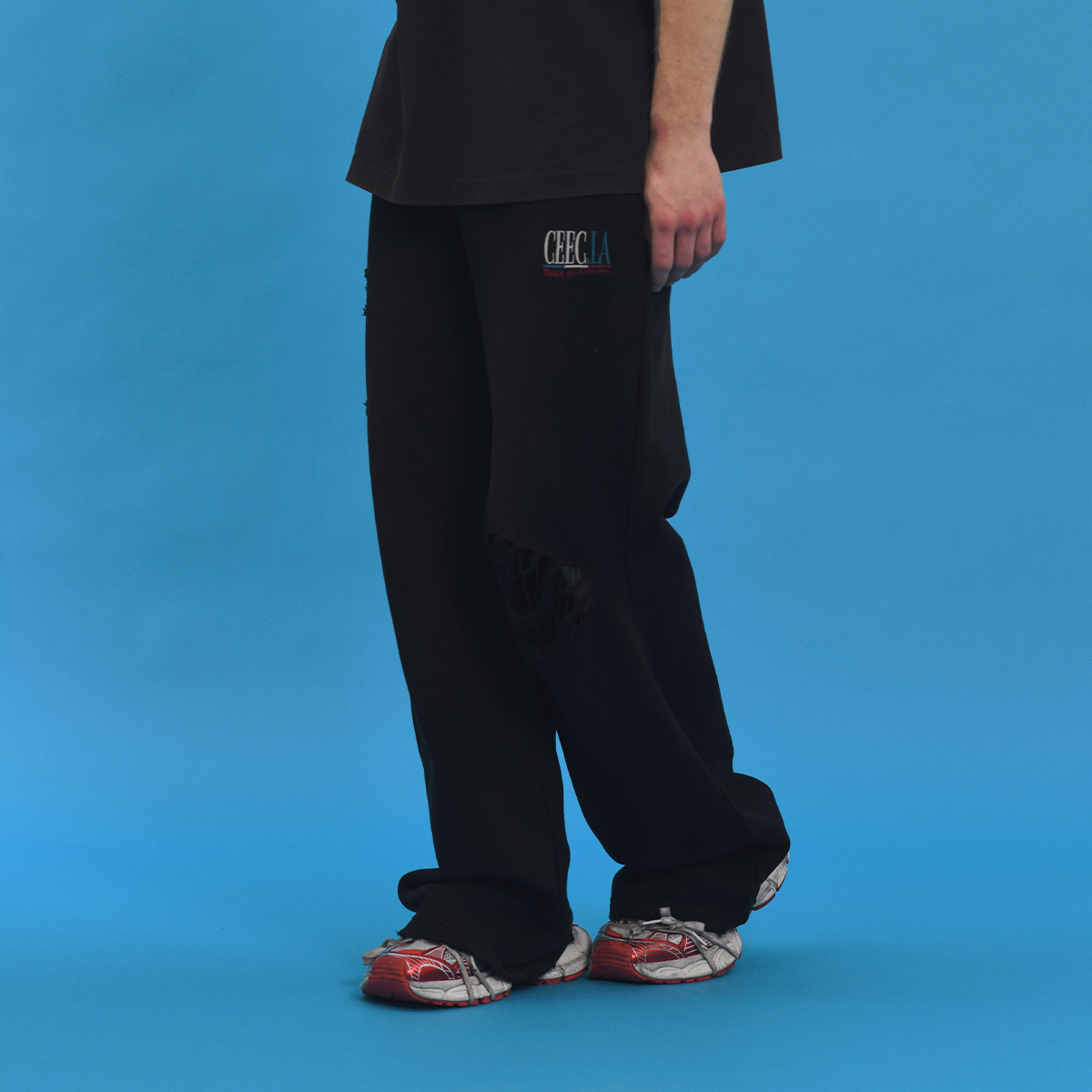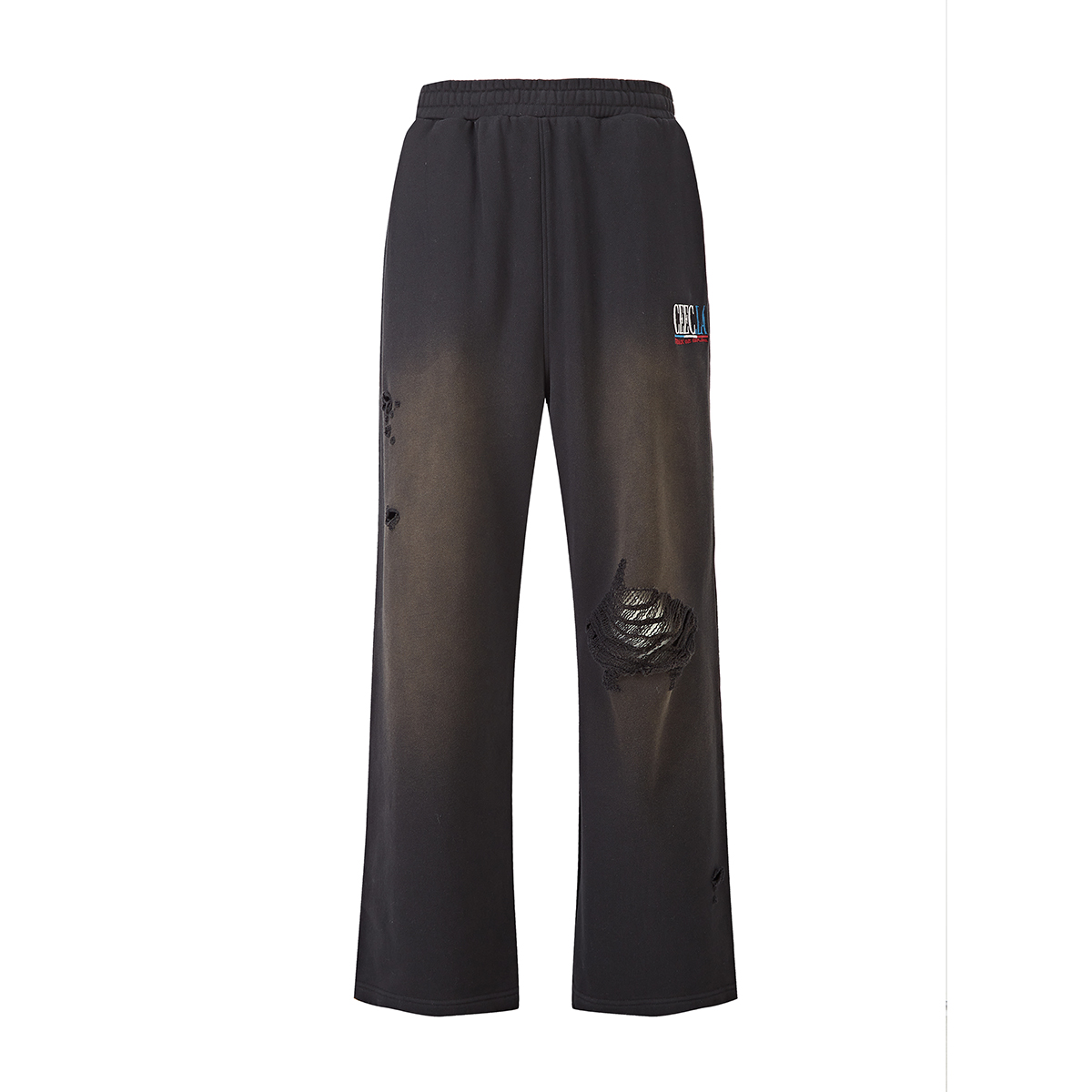 刺绣logo破洞阔腿长裤 男女同款 301360 CEEC