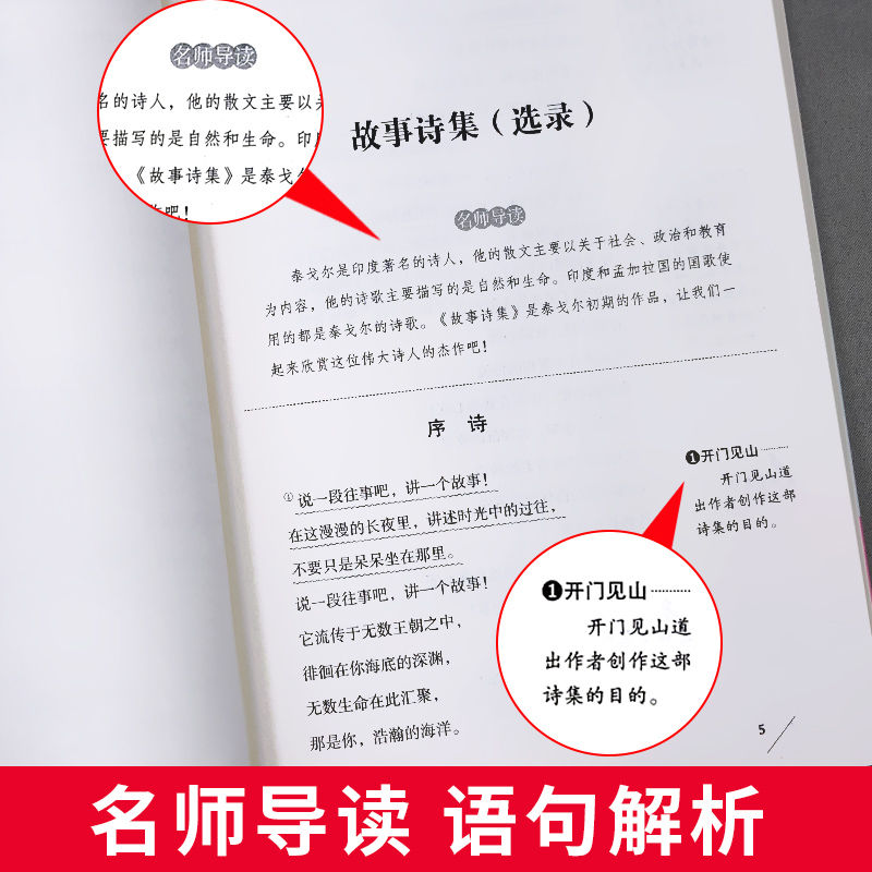 社 泰戈尔现代诗歌选四年级下册三四五六年级初中生七八九年级上册下册通用天地出版 泰戈尔诗选正版 名师导读带批注无障碍精读版