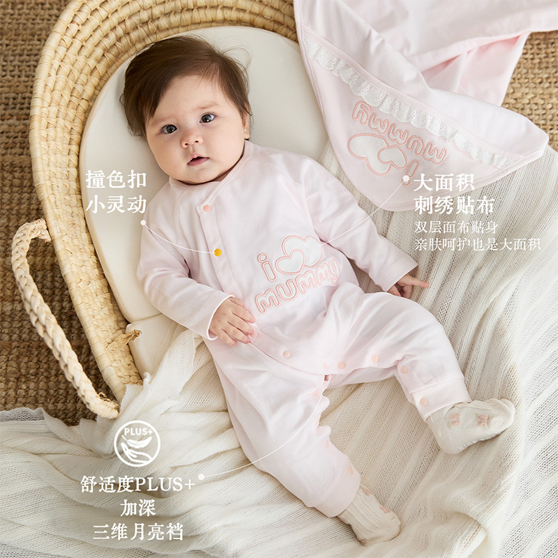 modomoma新生婴儿衣服秋装 爬服 男女宝宝纯棉无骨包屁连体衣四季