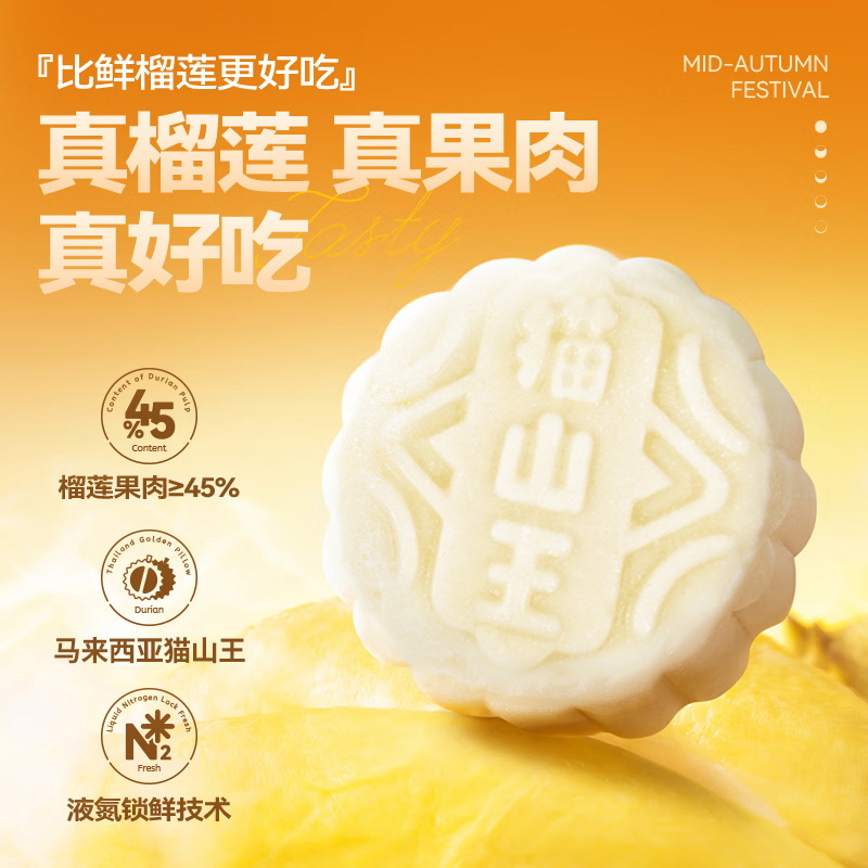 喜德农猫山王榴莲冰皮月饼礼盒广式 流心猫山王月饼中秋节送礼高档