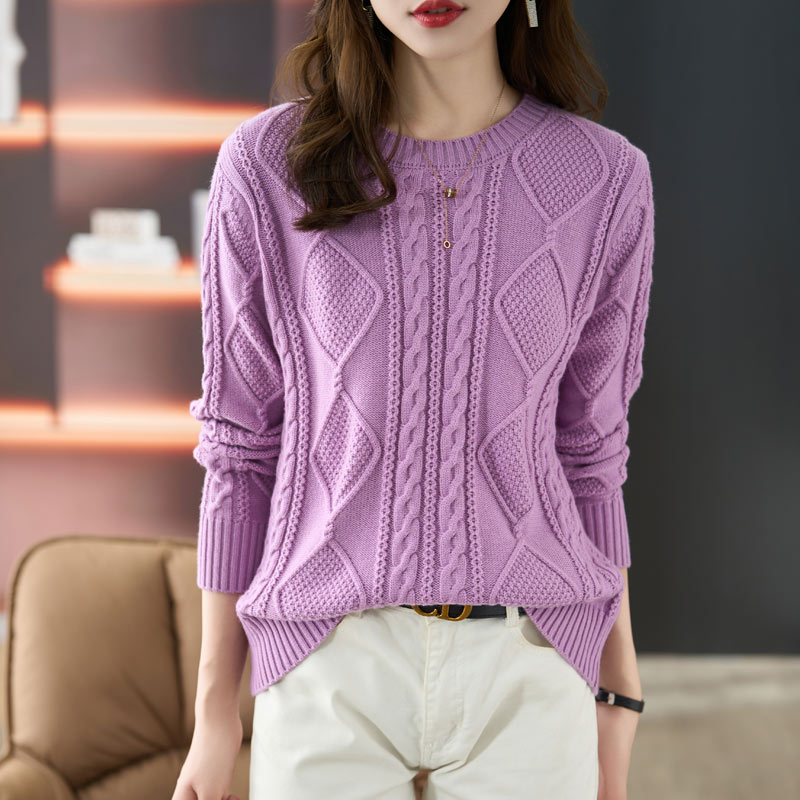 高级感上衣宽松打底针织衫 圆领100%纯山羊绒衫 女高端毛衣秋冬新款