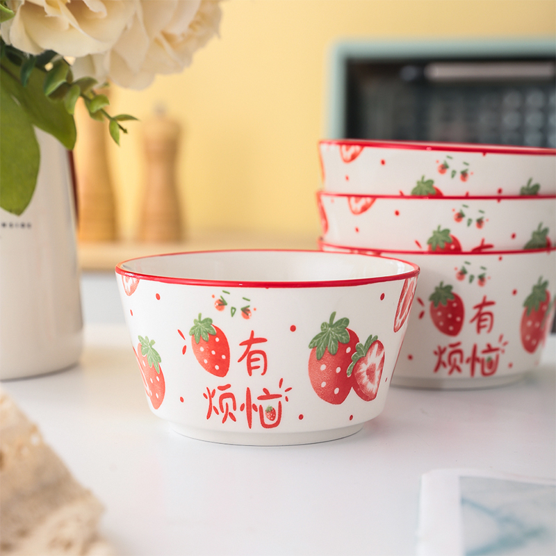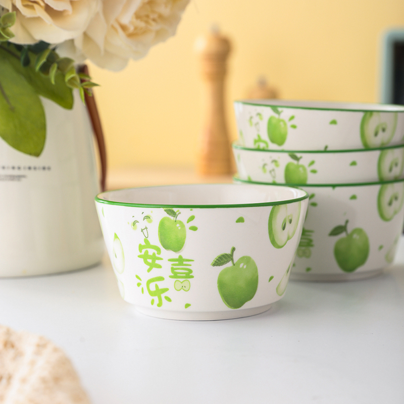 肆月中式 面碗菜盘餐具 复古米饭碗陶瓷斗笠碗家用釉下彩小碗漂亮