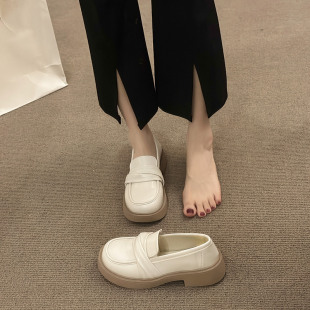 百搭复古舒适圆头粗跟防滑小皮鞋 乐福鞋 超火时尚 新款 女2025年春季