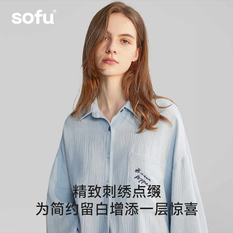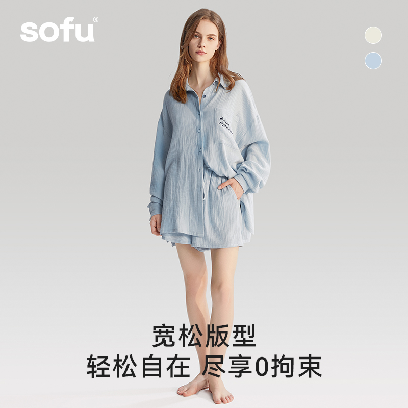 女纯棉A类抑菌家居服全棉居家服可外穿 睡衣套装 sofu 双层棉纱长袖
