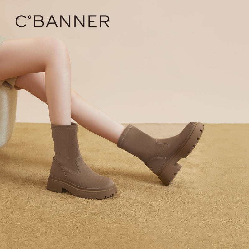 短靴 千百度厚底弹力靴袜靴百搭气质秋冬瘦瘦靴女鞋 双11预售