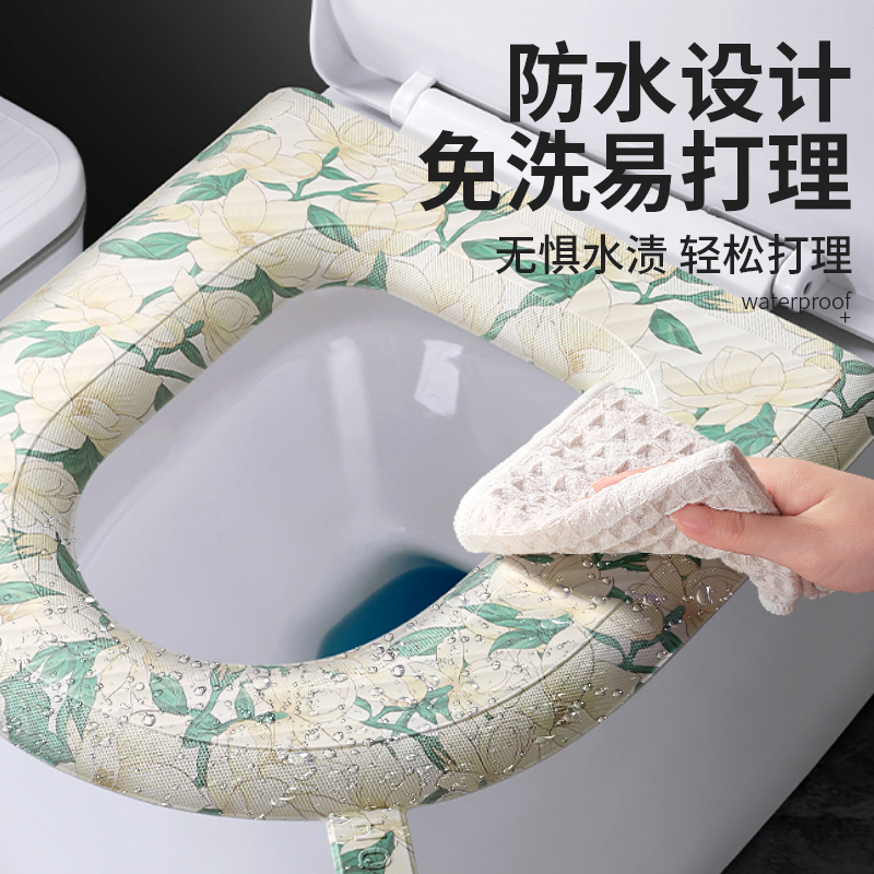 厕所坐便圈套子粘贴式 家用夏季 可水洗 通用款 加厚防水马桶坐垫四季