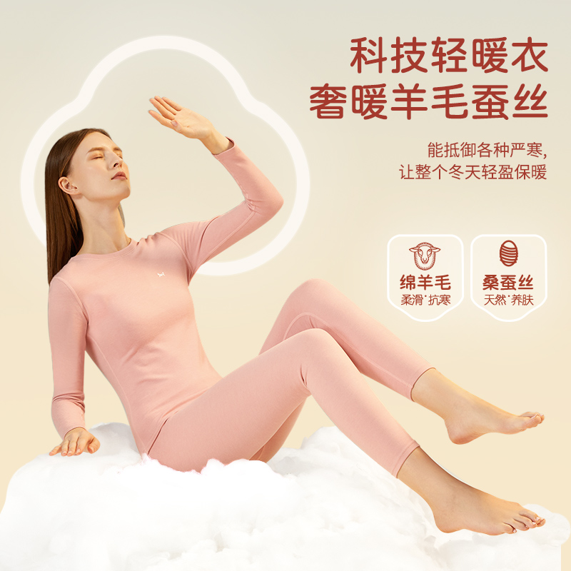 冬季 猫人2套羊毛保暖内衣女士套装 加厚加绒德发热内穿打底秋衣裤