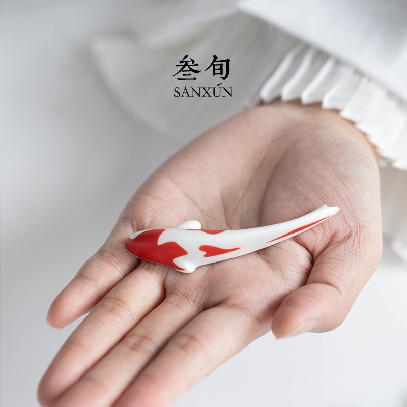 叁旬锦鲤小茶宠可爱创意功夫茶具摆件精品高档家用茶道装 饰品配件