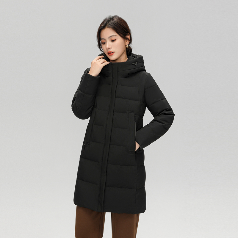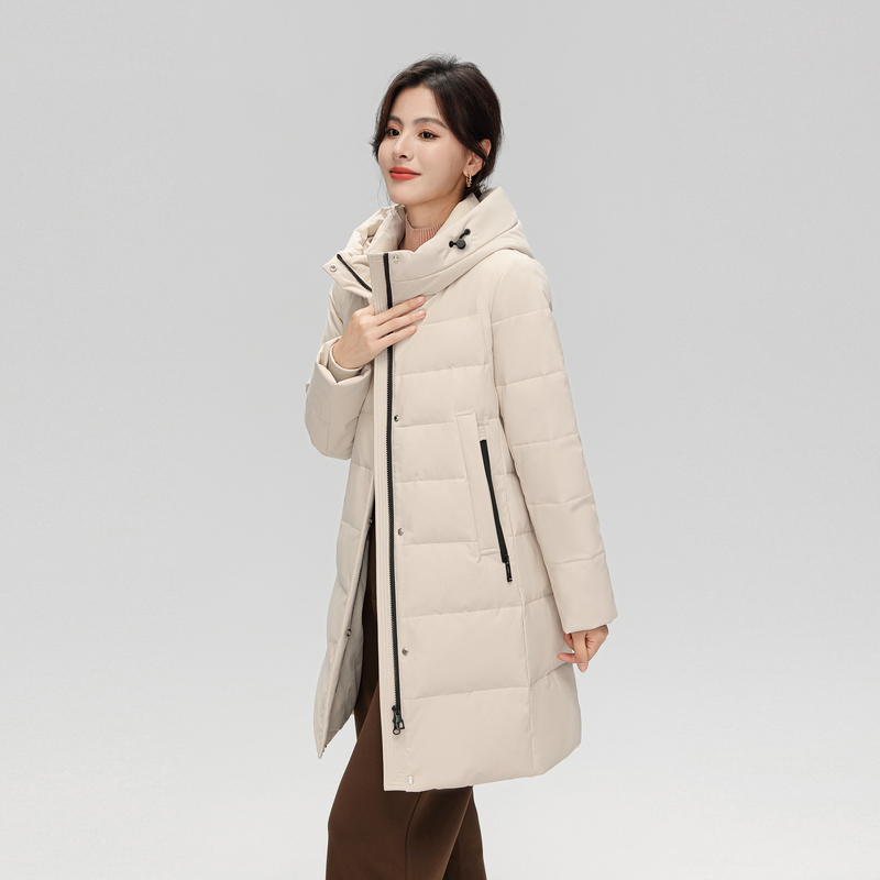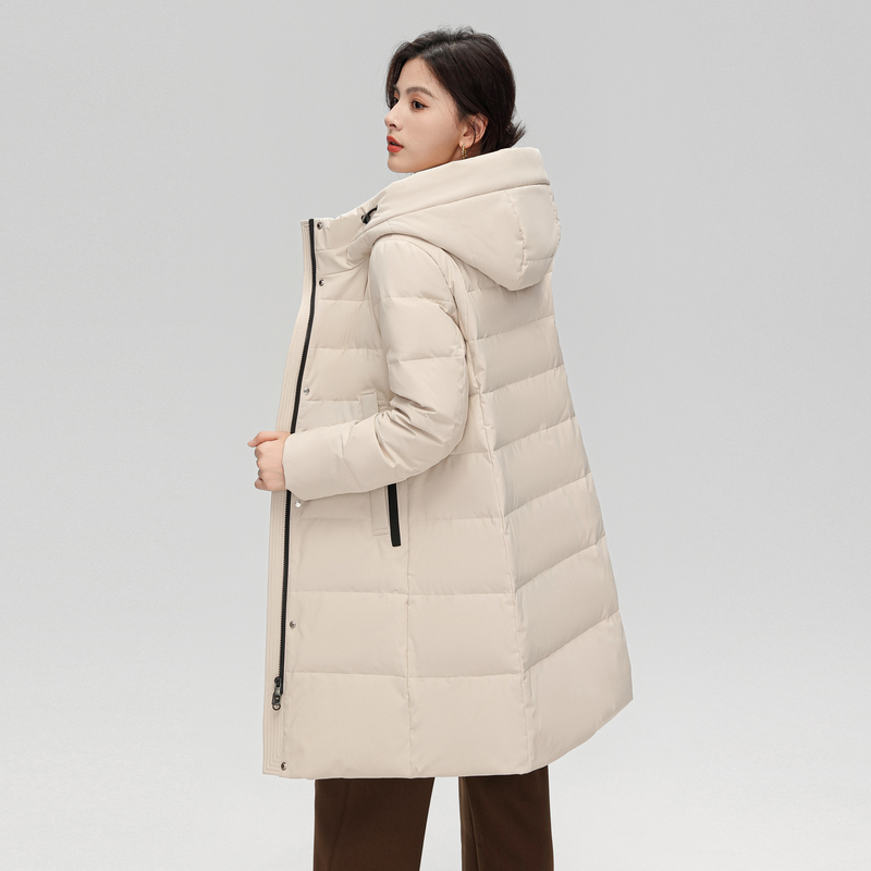 连帽加厚保暖纯色显瘦时尚 中长款 外套 新款 鸭鸭羽绒服女2025年冬季