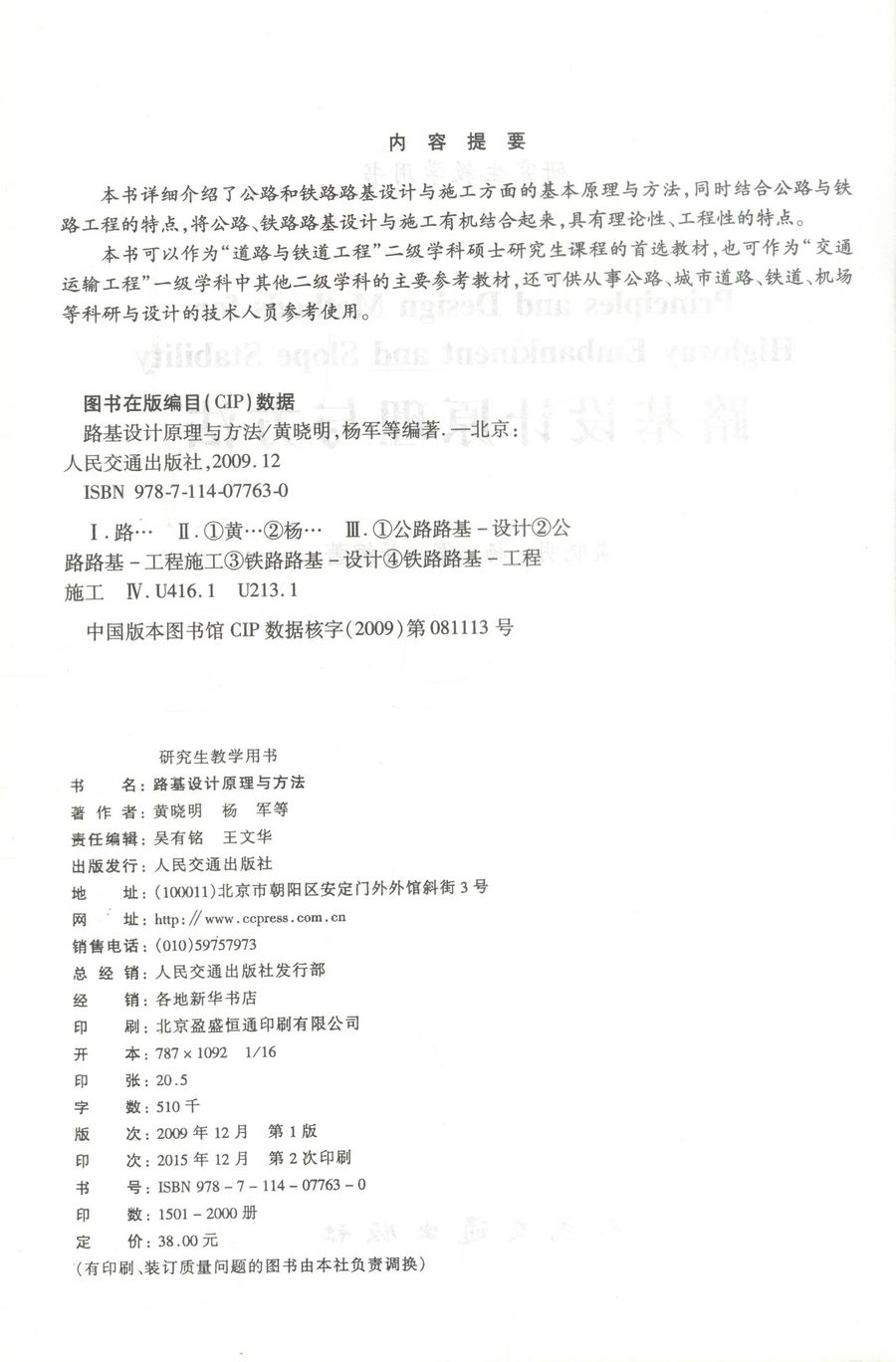 人民交通出版 路基设计原理与方法 杨军等 黄晓明 社9787114077630 研究生教学用书