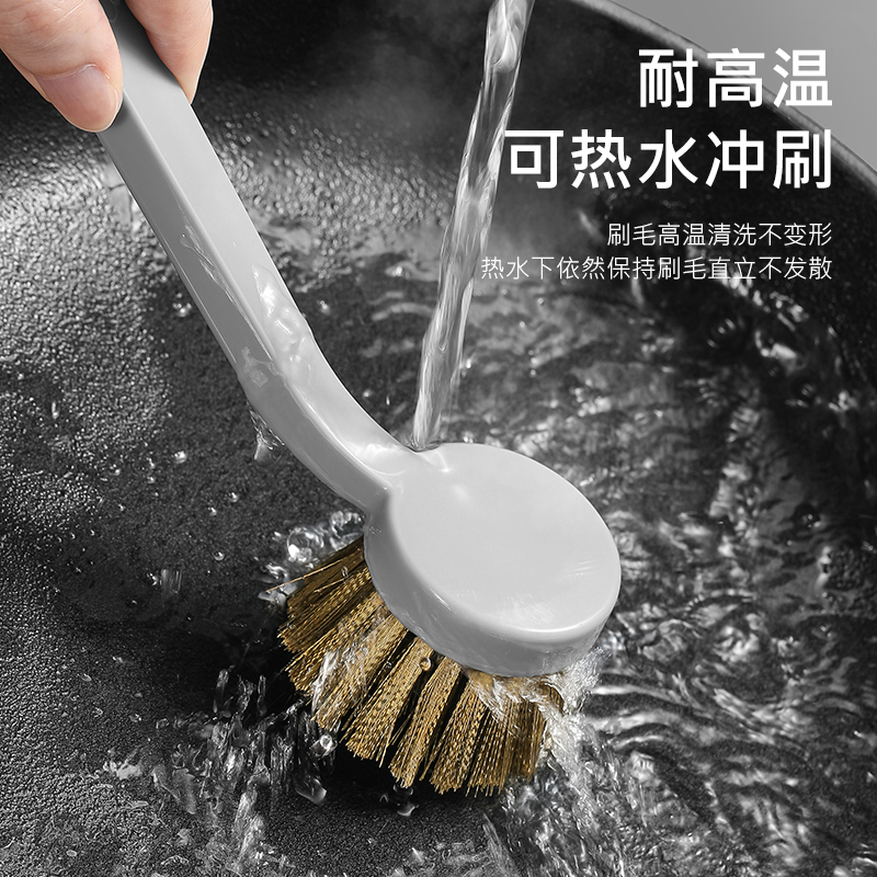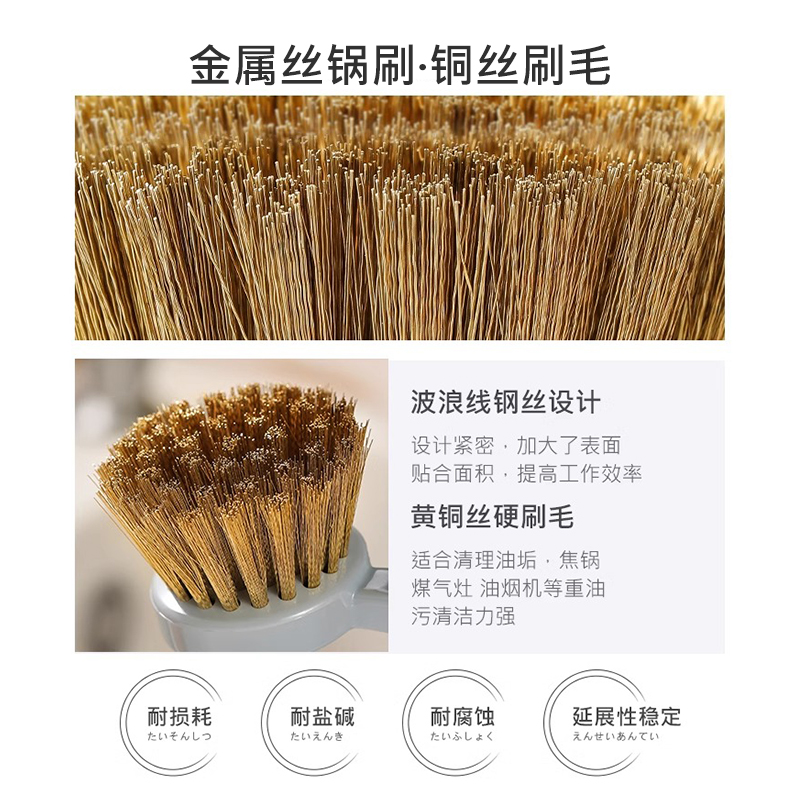 日本刷锅刷碗长柄黄铜丝硬毛锅刷子厨房家用洗锅刷清洁除垢油污