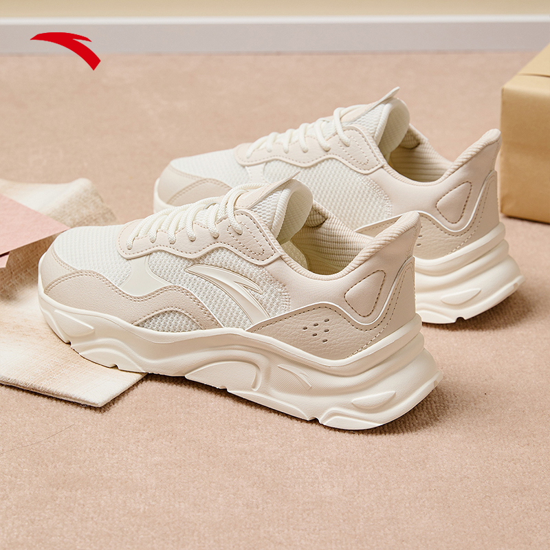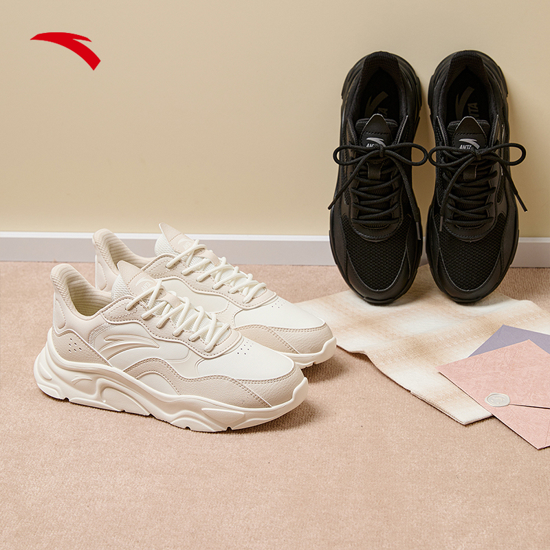 休闲鞋 安踏漫步 舒适轻便软底运动鞋 女款 轻质缓震网面皮面跑步鞋