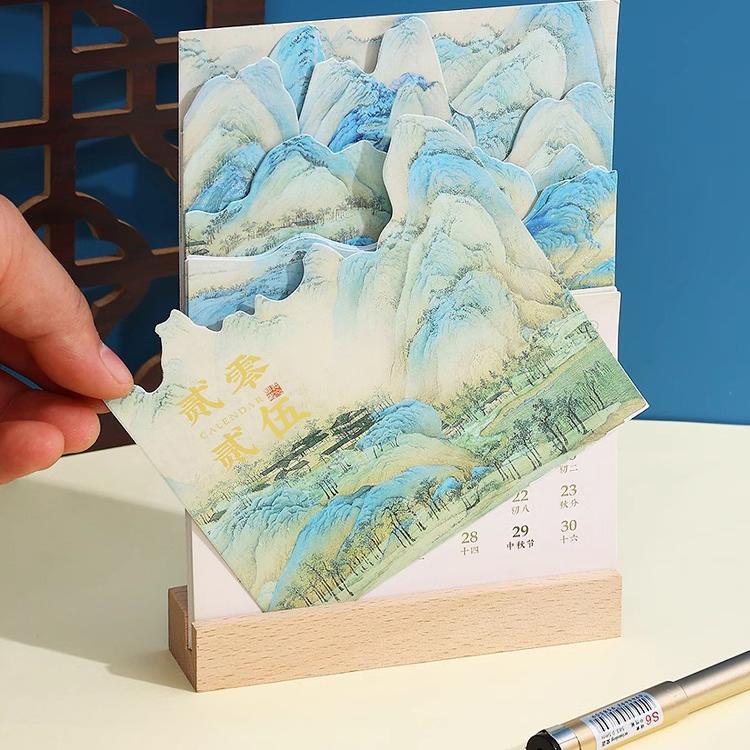 千里江山图台历2026年马年中国风古风日月历创意桌面摆件企业定制