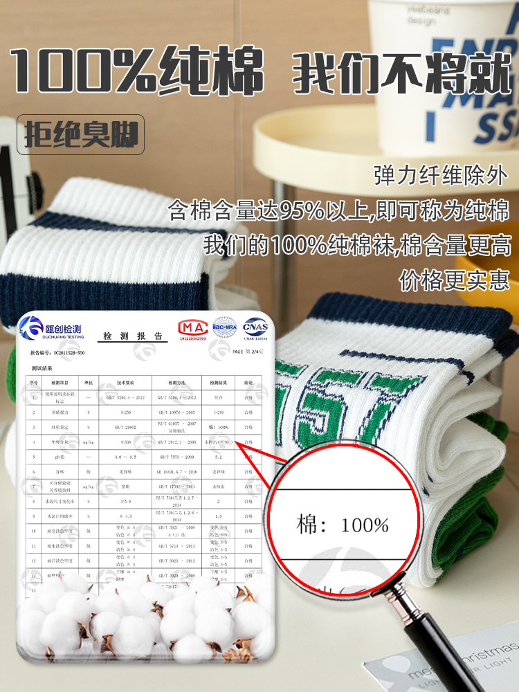 中筒秋冬季 袜子男款 纯色短白袜女士运动长袜吸汗透气 新疆棉
