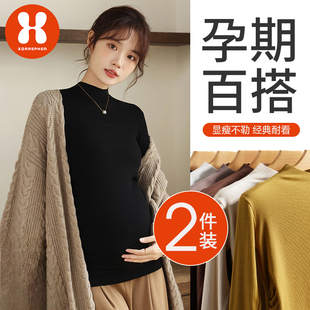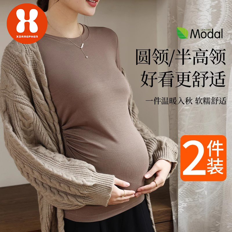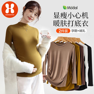 上衣 莫代尔半高领内搭t恤孕期加绒保暖长袖 奢芬孕妇打底衫 春秋款