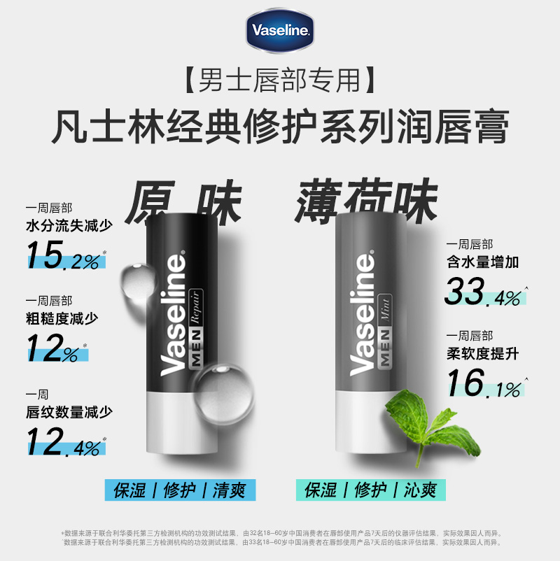 凡士林修护型润唇膏滋润唇部淡唇纹舒缓干燥补水保湿 护唇膏 男士