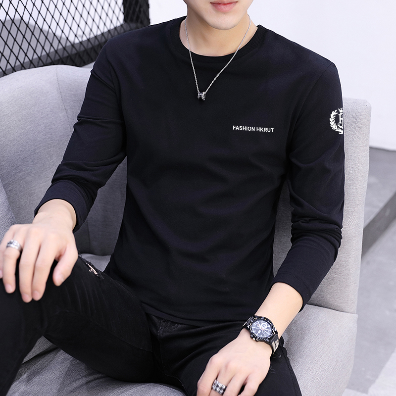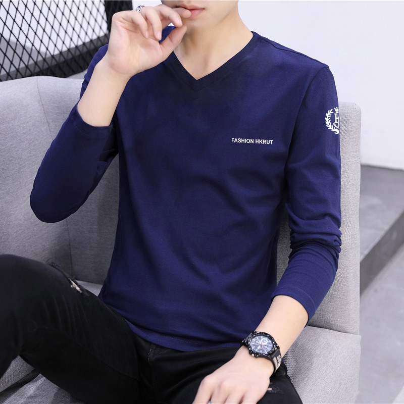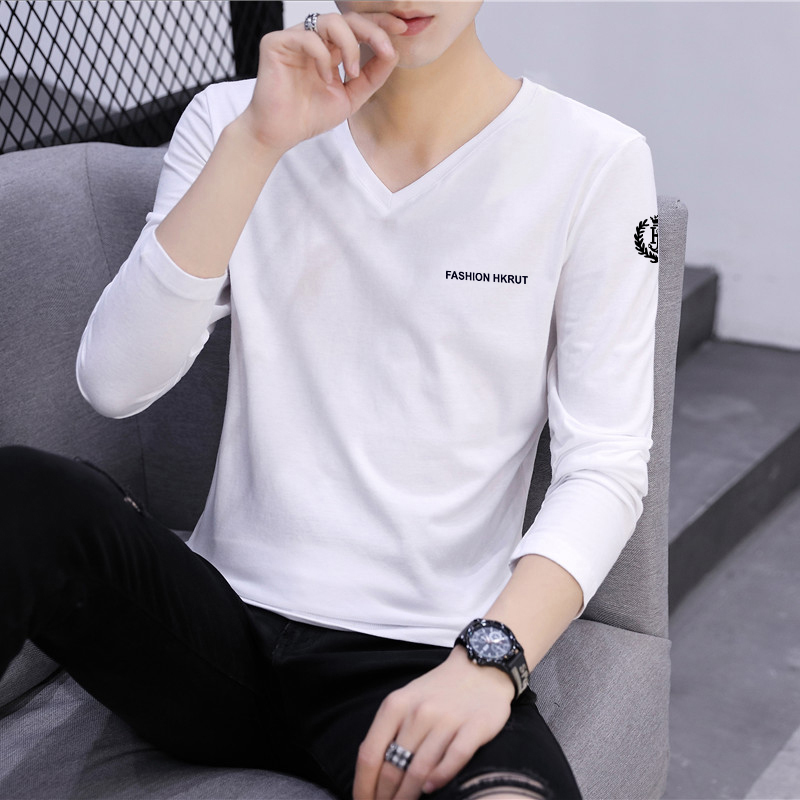 t恤男士 大码 长袖 V领宽松纯棉潮流纯色衣服体恤男装 秋季 打底衫 韩版