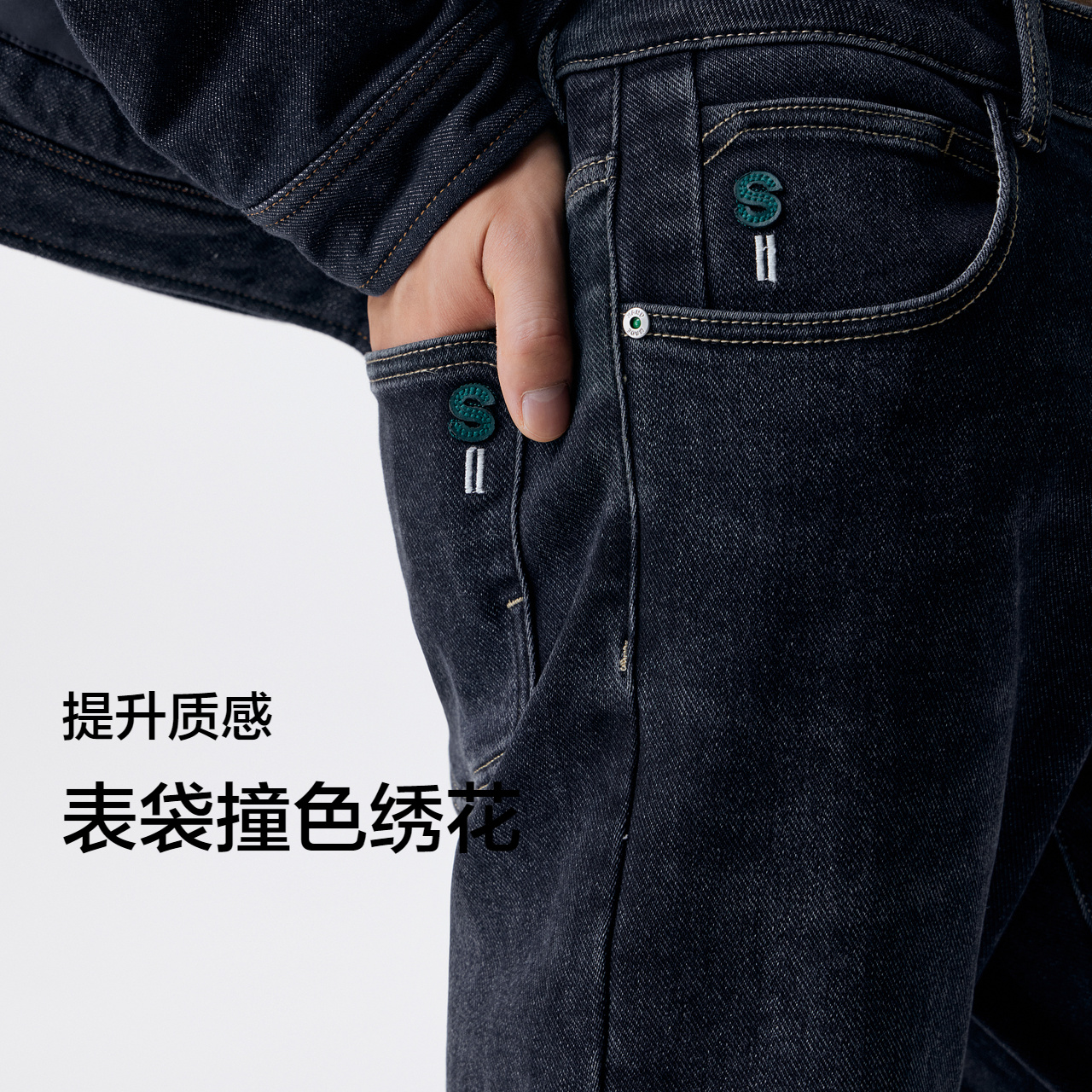 高腰直筒宽松加绒休闲长裤 老爷车牛仔裤 新款 2025年秋冬季 子男 男士