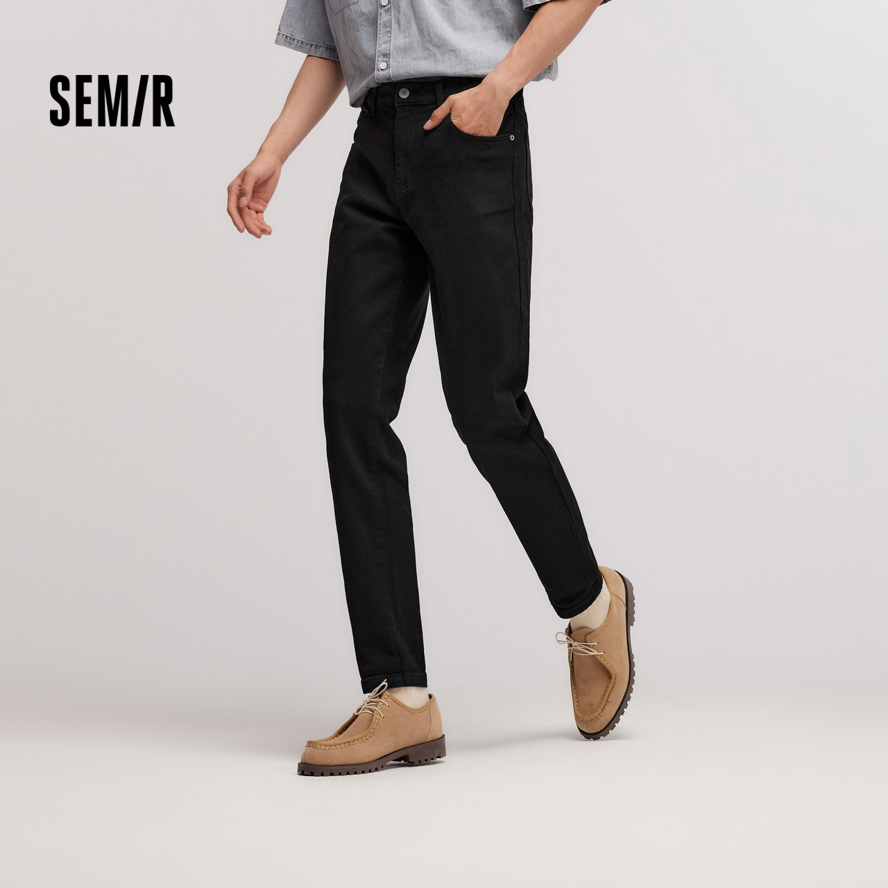 子男款 雅仓秋季 cleanfit休闲裤 男潮牌宽松中蓝2025新款 直筒牛仔裤