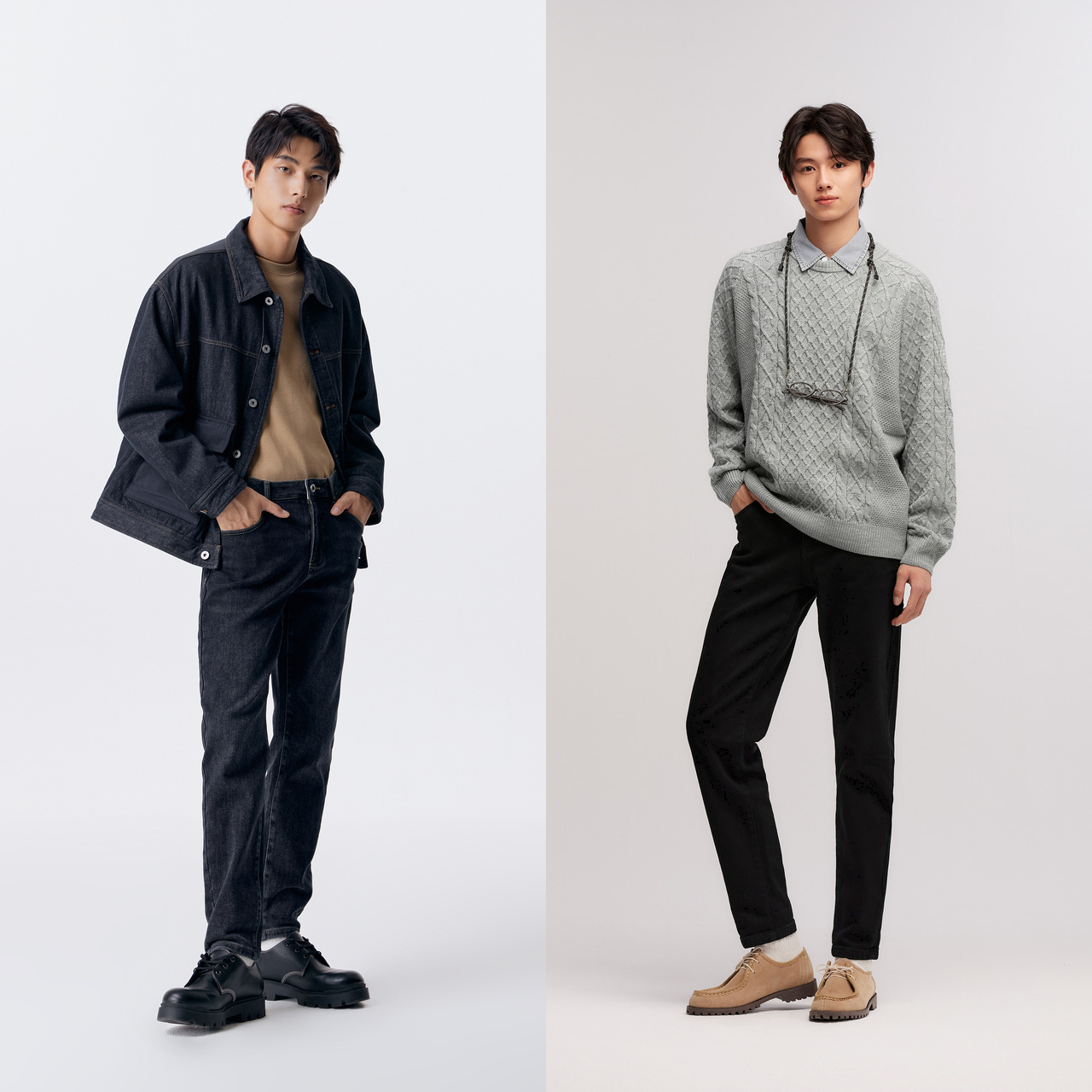 经典 新品 明线压线时髦经典 2025秋季 宽松直筒牛仔长裤 GXG男装