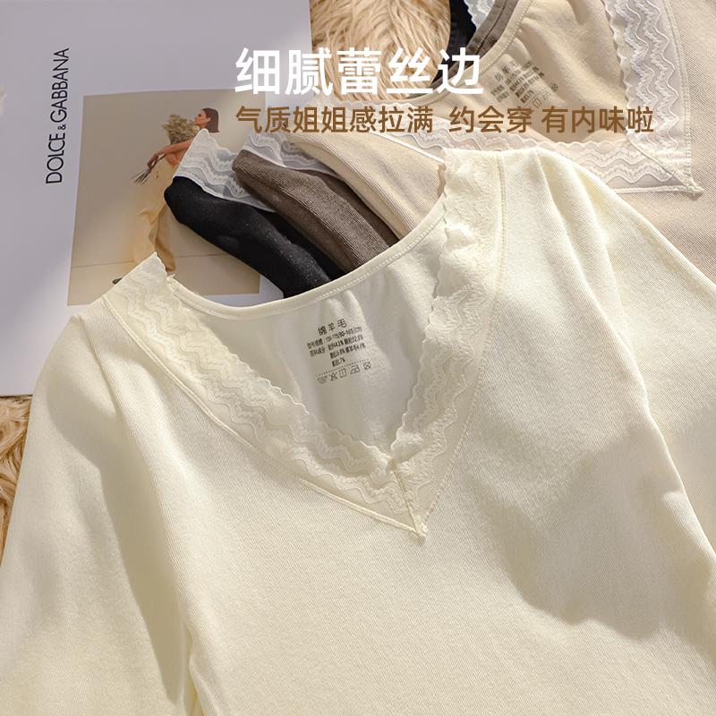 无痕打底衫 绵羊毛 内衣女秋冬季 保暖套装 加绒加厚带胸垫 秋衣秋裤