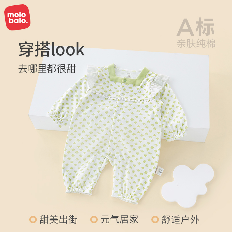 爬服 柔软哈衣花边袖 麦拉贝拉婴儿连体衣莫代尔棉春秋季 女宝宝长袖