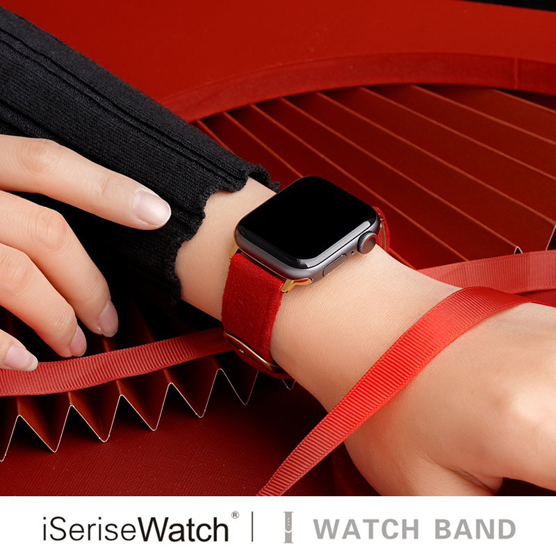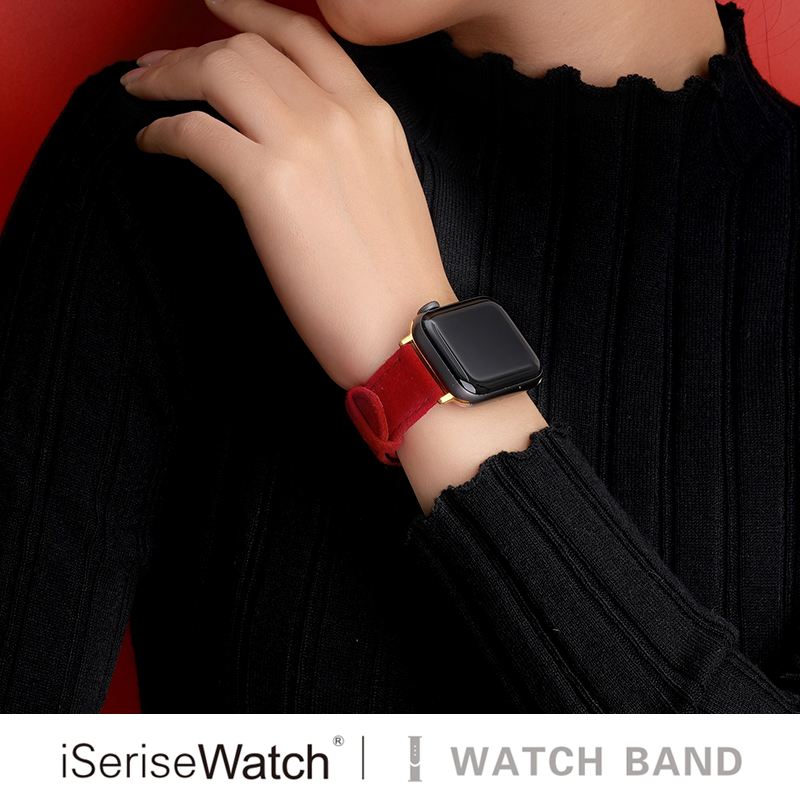 新年款 iserisewatch适用于iwatch11苹果手表applewatch10表带新款 ultra红色女生创意皮质高级夏