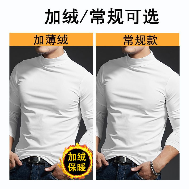 中青年百搭休闲秋衣 黑色半高领打底衫 中领长袖 t恤男秋冬纯色修身