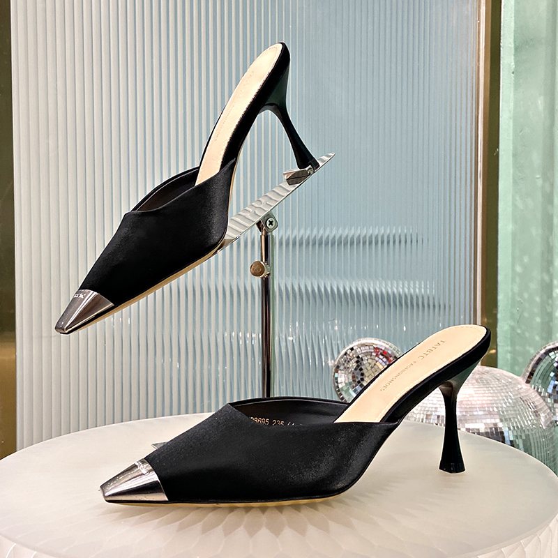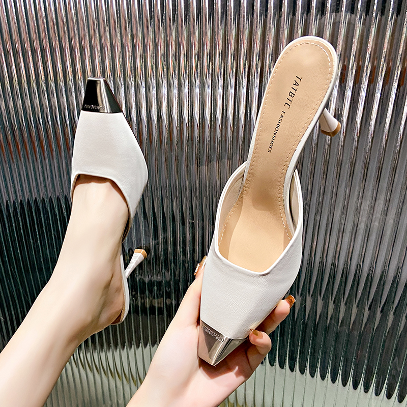 防踢外穿凉拖凉鞋 女细跟懒人高跟鞋 女 包头尖头半拖鞋 2025年春夏季