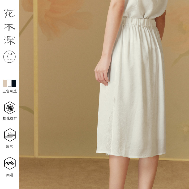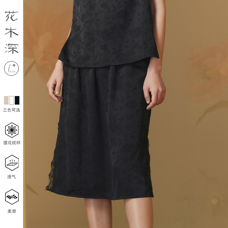 醋酸提花开衩半裙春夏秋中国风女装 花木深基础款 直筒半身裙新中式