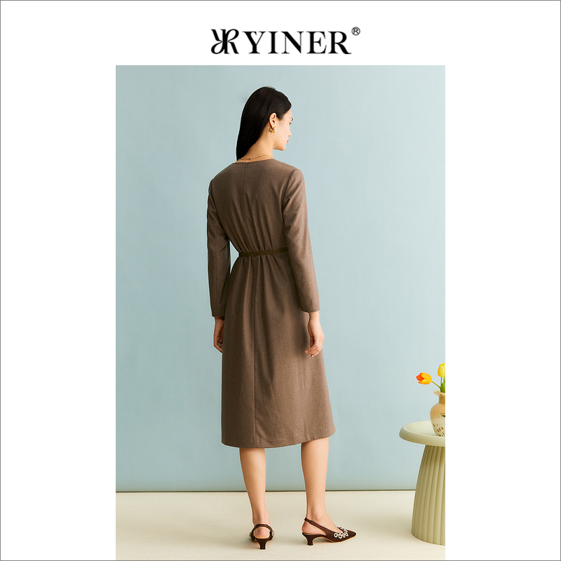 冬季 YINER音儿女装 山羊绒 肌理气质V领连衣裙 绵羊毛
