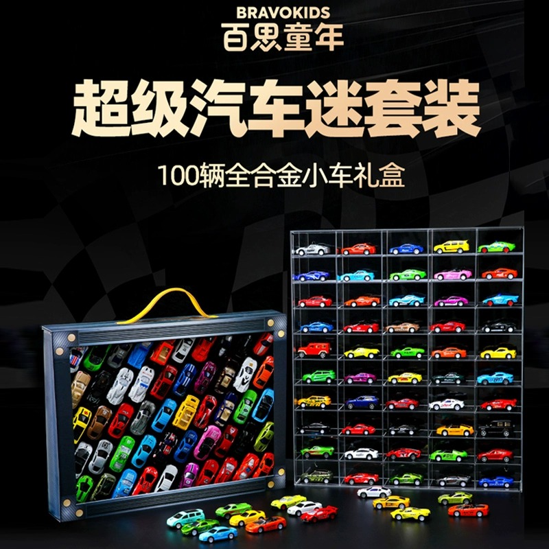 百思童年100辆全合金小汽车礼盒男孩仿真汽车模型玩具车生日礼物