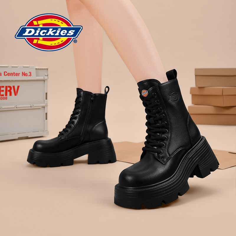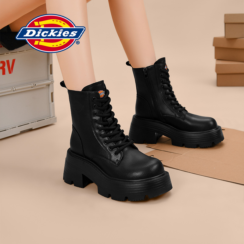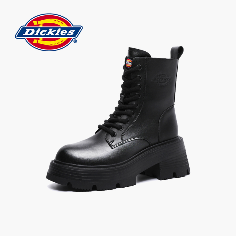 Dickies马丁靴女2025秋冬新款 单靴黑色皮靴女 短靴女厚底增高薄款