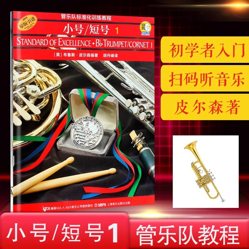 正版 管乐队标准化训练教程小号短号1册布鲁斯皮尔森学校乐队练习曲初学者入门零基础教材双簧管配套教学训练队曲谱演奏学习第1