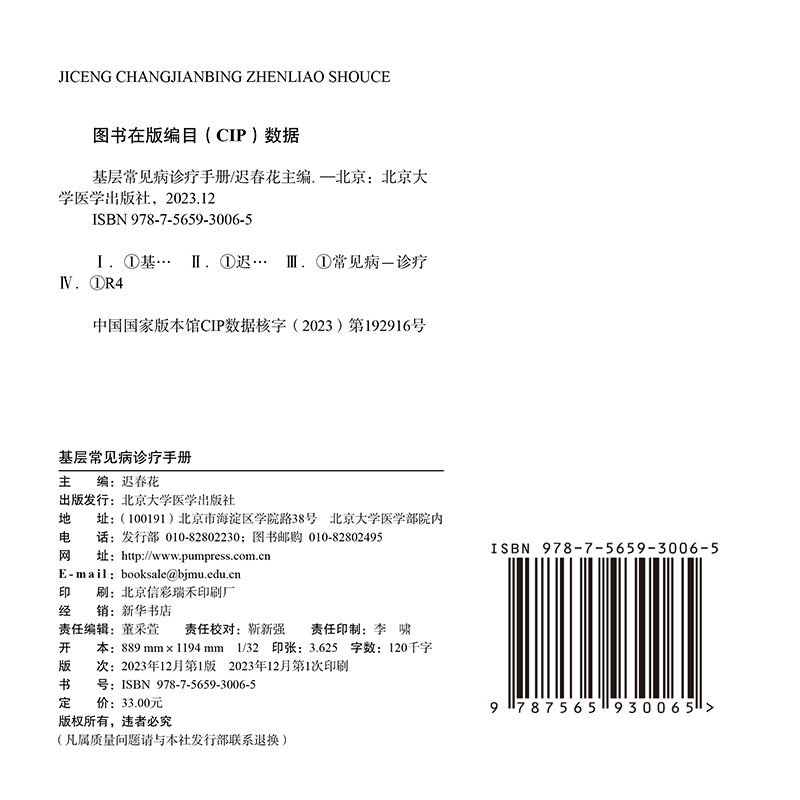 迟春花 基层常见病诊疗手册 主编 北京大学医学出版 9787565930065 现货正版 社 平装