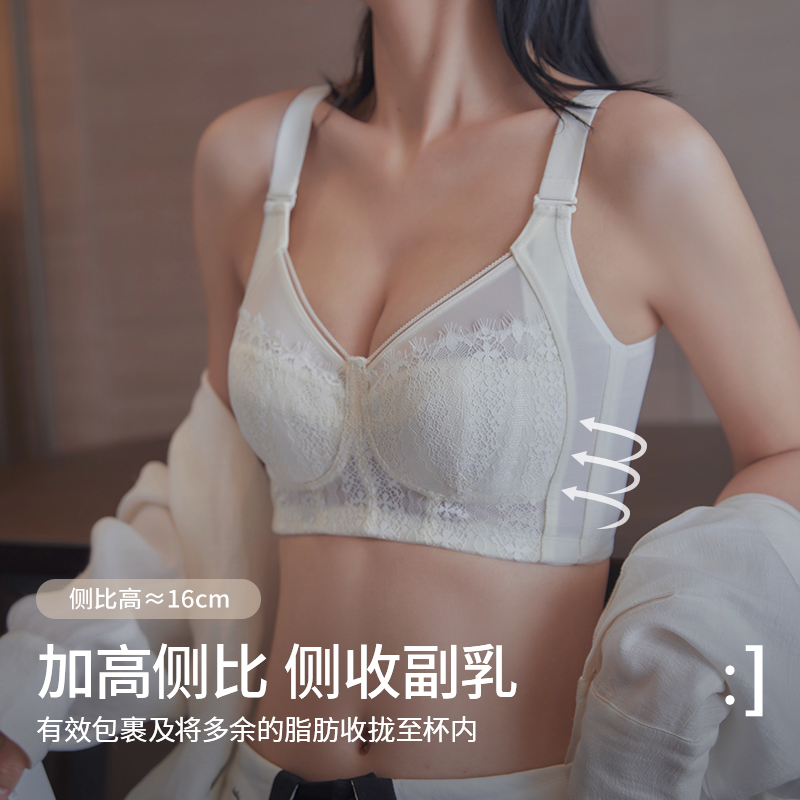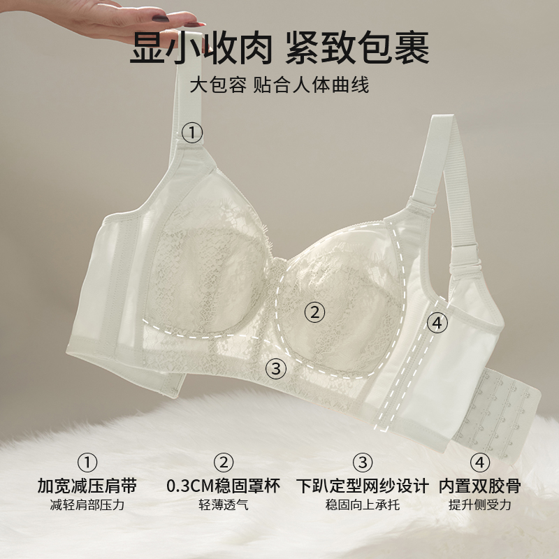 素肌良品悬浮花瓣杯夏季 大胸显小无痕无钢圈收副乳防下垂文胸 薄款