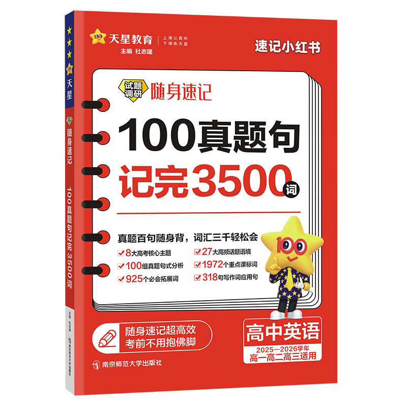 2026版 试题调研随身速记高中英语100真题句记完3500词高考英语词汇手册单词口袋书高考核心主题高频话题语境写作词应用句天星教育