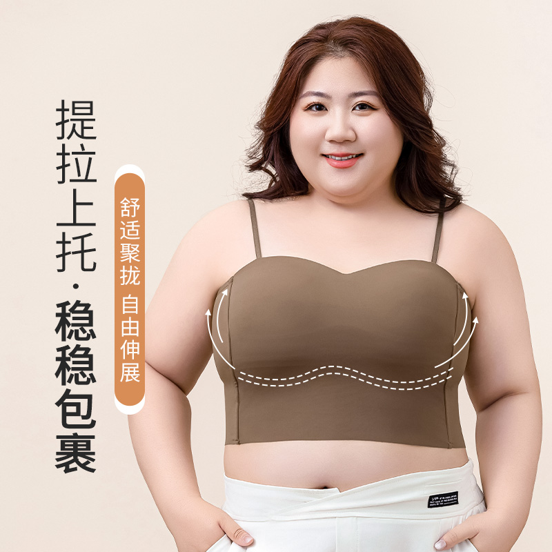 2025年大码 吊带背心内衣女胖mm200斤大胸带胸垫内搭外穿文胸薄春