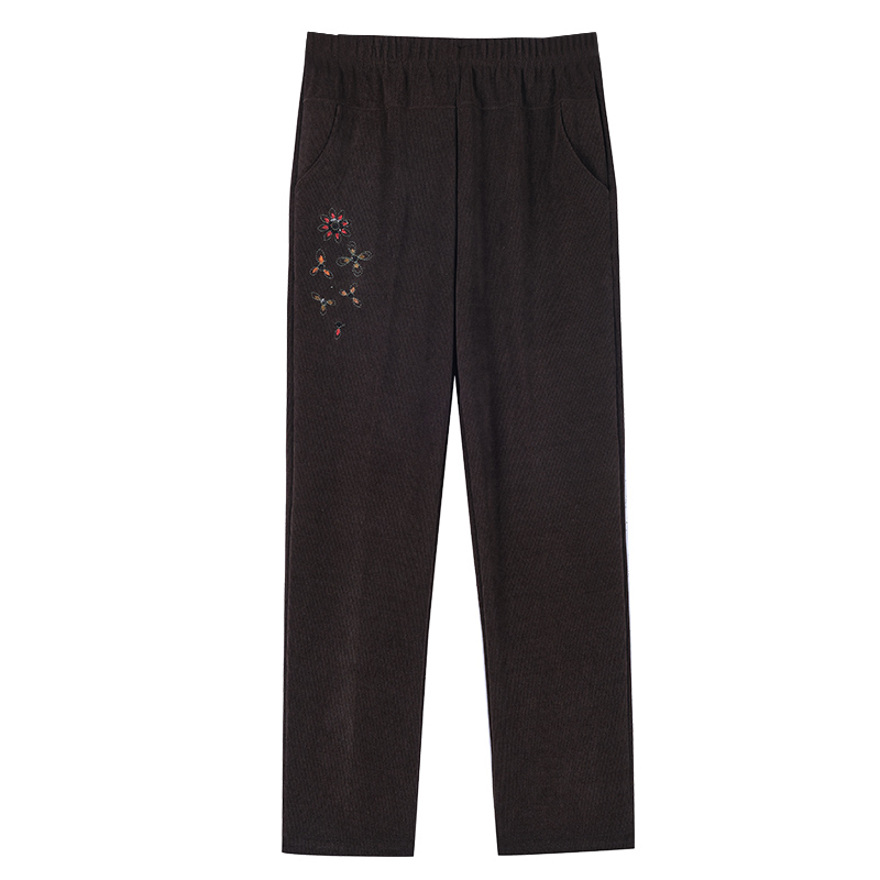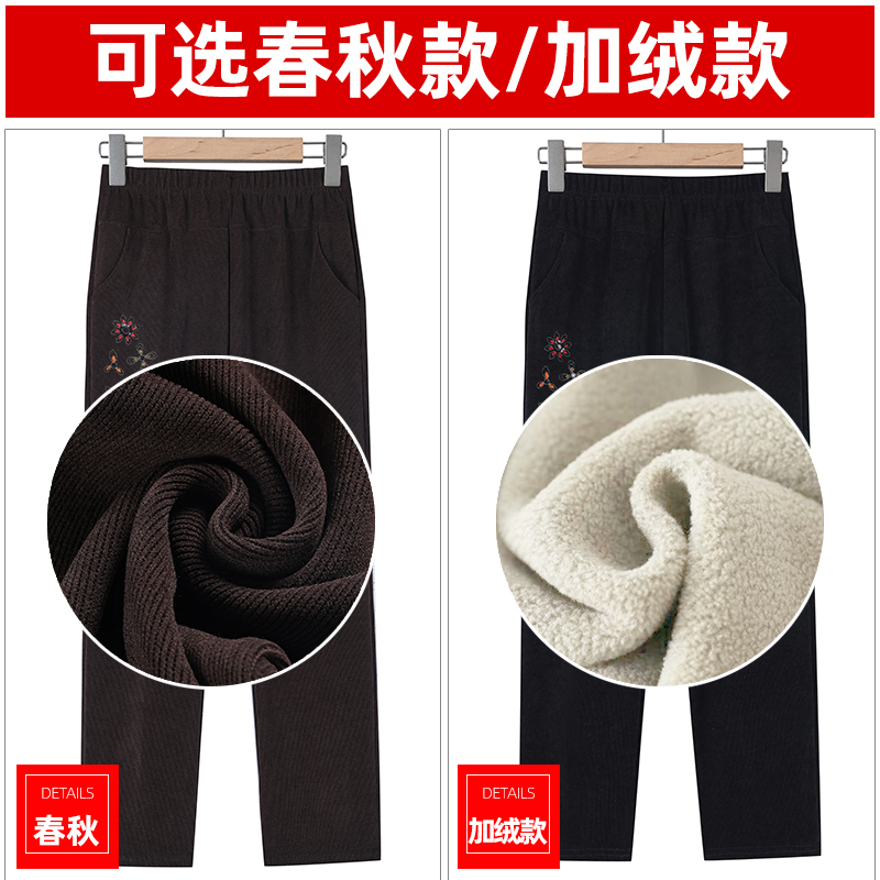 子加绒外穿奶奶高腰条绒直筒裤 妈妈裤 春秋加肥加大码 中老年人女裤
