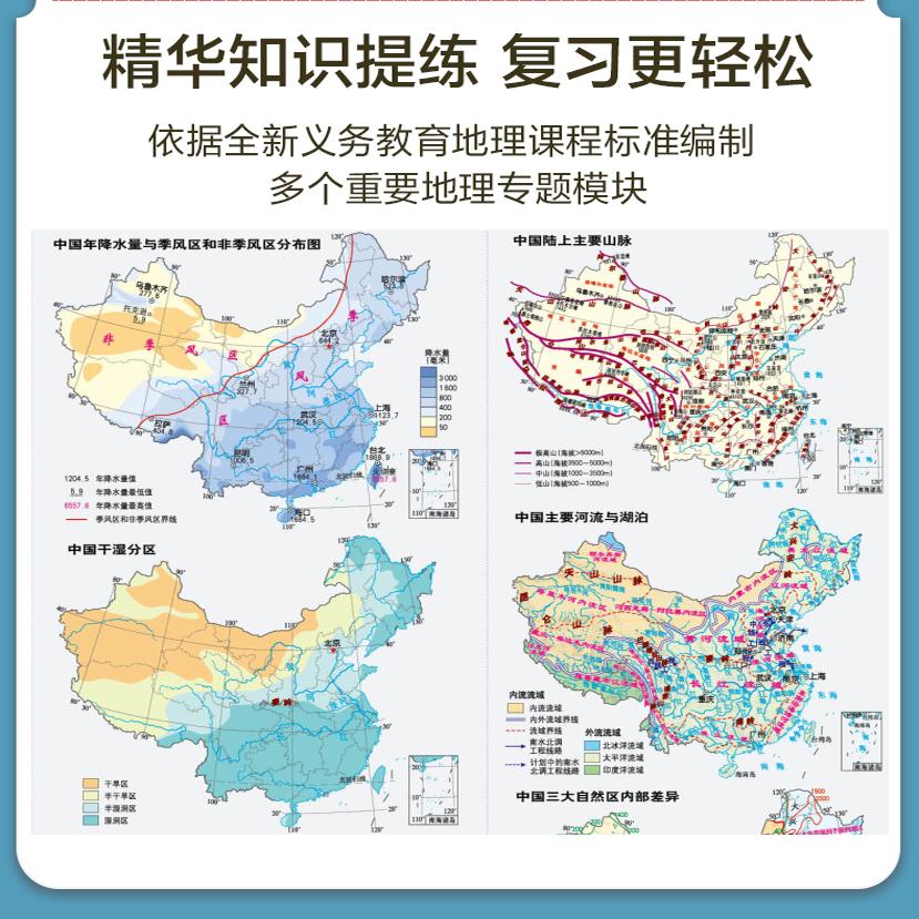 2025新版 展开约88x60cm 中国 新课标学习与考试地图 政区地形知识点两张四面内容信息丰富 世界地理地图初中专用版