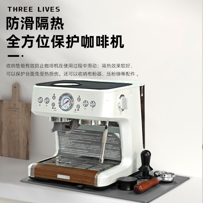 THREELIVES咖啡机收纳垫抗菌软胶咖啡机垫防滑减震咖啡吧台台面垫