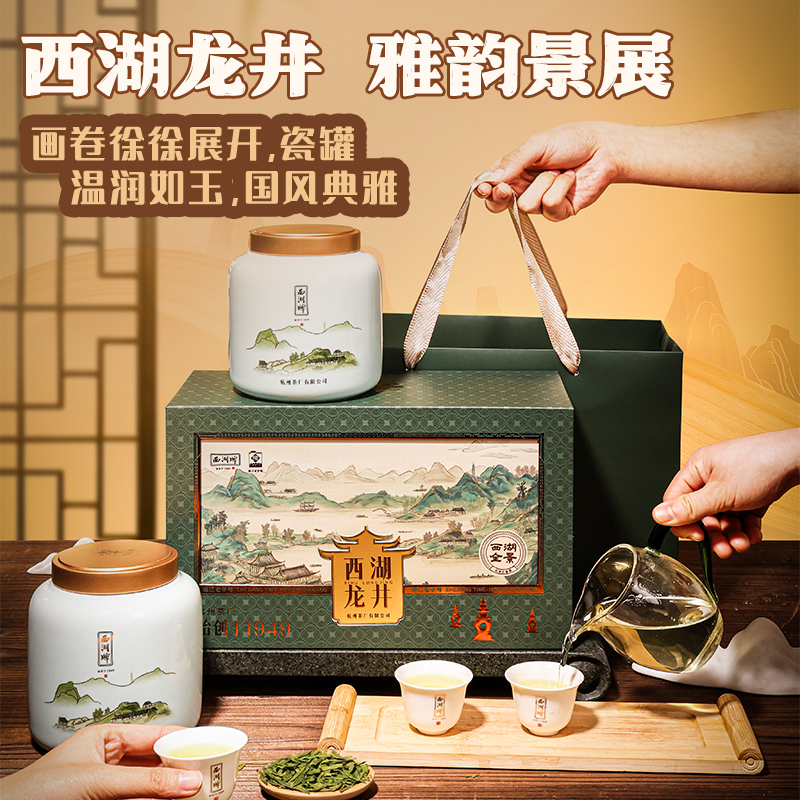 2025新西湖牌明前特级西湖龙井茶叶老茶树瓷罐礼盒绿茶节日送长辈