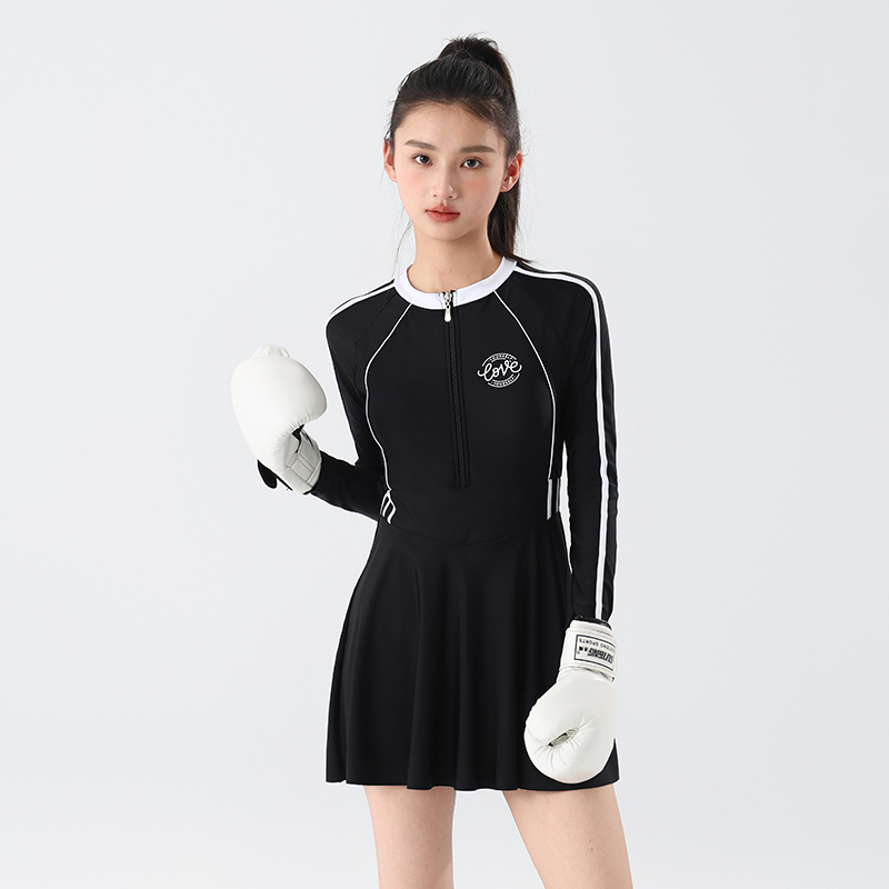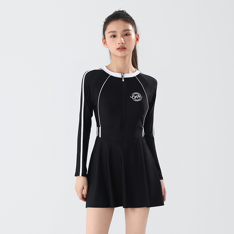 中大童泳衣女连体长袖 防晒保暖运动游泳衣海边游泳馆专用速干泳装